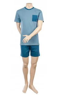 Piżama Męska 3Xl Slim Fit Dla Szczupłego Krótki Rękaw Szorty Lato Niebieska