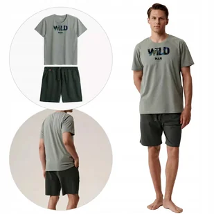 PIŻAMA MĘSKA bawełniana krótka NMP-396 Wild wygodna Atlantic – Dla tych, co lubią wygodę! 🧘 Piżama męska Atlantic – NMP-396, XL, szary || ZIELONY 📣 H...