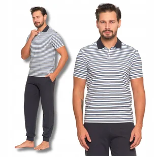 Piżama Męska Bluzka w Paski Krótki Rękaw Długie Spodnie Klasyczna MORAJ - M