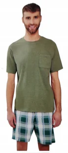 Piżama męska Cleve bawełniana letnia XXL granatowa zielona kratka S935