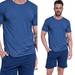 PIŻAMA MĘSKA CORNETTE 925 Michael S / 44 Granatowy Piżama męska 925/177 Michael firmy Cornette wykonana z najwyższej jakości bawełny. Koszulka gładka w kolorze granatowego melanżu z krótkim rękawem, dekolt okrągły. Wygodne krótkie spodenki w granatowym kolorze z wygodnymi kieszeniami na drobiazgi np. telefon. W pasie wygodna guma plus sznurek do idealnego dopasowania. Całość prezentuje się mocno sportowym charakterze.