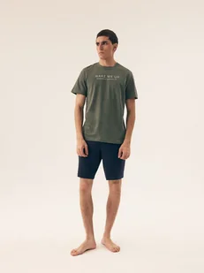 Piżama męska z nadrukiem windsurfing granat krótkie nogawki na lato L