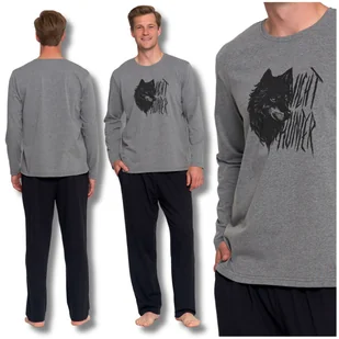 PIŻAMA MĘSKA DWUCZĘŚCIOWA DŁUGI RĘKAW I SPODNIE NADRUK WILKA MORAJ 4XL PIŻAMA MĘSKA DWUCZĘŚCIOWA DŁUGI RĘKAW I SPODNIE NADRUK WILKA MORAJ 4XLWygoda i charakter w jednymTa piżama męska to idealny wybór, gdy szukasz połączenia komfortu z wyrazistym stylem. Wykonana z miękkiej, oddychającej dzianiny, zapewnia pełen komfort o każdej porze roku, a nadruk z wilkiem dodaje jej charakteru. Cechy produktuGóra: Koszulka z długim rękawem z wyrazistym nadrukiem wilka. Dół: Gładkie, czarne spodnie z elastyczną talią, która nie krępuje ruchów i idealnie dopasowuje się do sylwetki.
