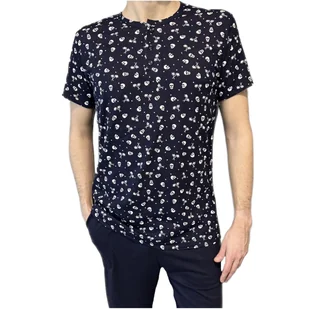 Piżama męska bawełniana dwuczęściowa Komplet składa się z: bluzki z krótkim rękawem spodni 3/4 Na tej aukcji kupujesz rozmiar M Cechy charakterystyczne: kosz...