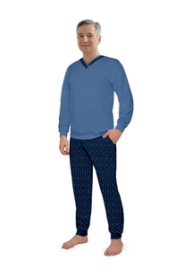 Piżama Męska L Długi Rękaw Spodnie Bawełniana Elegancka Niebieska Granatowa