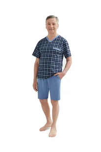 Piżama Męska M Krótki Rękaw Spodenki Szorty Z Kieszeniami Bawełniana Granatowa W Kratkę 2
