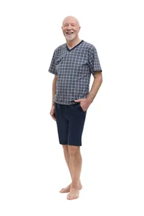 Piżama Męska M Krótki Rękaw Spodnie Krata Bawełna Dla Taty Dziadka Granatowa