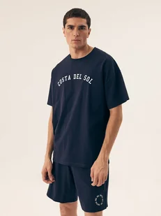 Piżama męska Sol Henderson to klasyka w nowoczesnym wydaniu. Granatowa koszulka o oversizowym kroju z okrągłym dekoltem i wyrazistymi napisami łączy w sobie ...