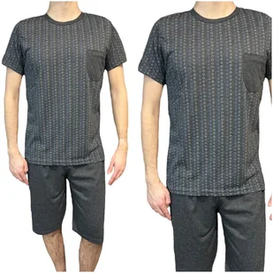 Piżama męska bawełniana dwuczęściowa Komplet składa się z: bluzki z krótkim rękawem spodni 3/4 Na tej aukcji kupujesz rozmiar M Cechy charakterystyczne: wzor...