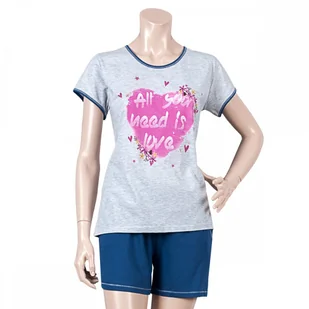 PIŻAMA MŁODZIEŻOWA S DAMSKA KRÓTKI RĘKAW SPODENKI BAWEŁNIANA SERCE GRANATOWA