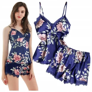 Piżama satynowa spodenki top dwuczęściowa kwiaty - M