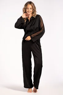 Rewelacyjny komplet nocny Colette. w całości wykonany jest z wysokiej jakości materiałówkoszulowa góra z długim rękawemdekolt w szpicna rękawach i nogawkach wstawki z ozdobnym haftemdługie spodnieproste nogawkiw pasie wygodna gumkaSkład: 83% poliester, 10% poliamid, 7% elastan.