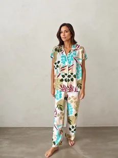 Oferuję Ci naturalną i super wygodną piżamkę z wiskozy. Piżamka składa się ze spodni oraz klasycznej koszuli na piękne z masy perłowej guziki. Przywołuje wspomnienia wakacji w tropikach :) Spodnie oraz top S ...