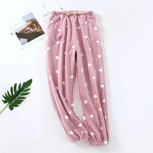 Piżamowe spodnie w serduszka - Różowy S/M