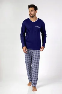 Klasyczna piżama męska z długim rękawem z wysokogatunkowej bawełny. Koszulka gładka z dekoltem w serek i kieszonka na wysokości klatki piersiowej. Do komplet...