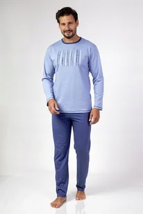 Klasyczna piżama męska z długim rękawem z wysokogatunkowej bawełny. Koszulka gładka z okrągłym dekoltem i nadrukiem klatki piersiowej. Do kompletu spodnie je...