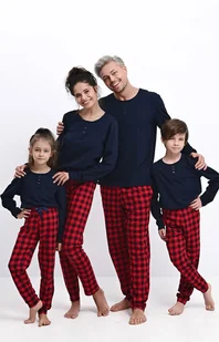 Sensis Damska piżama świąteczna Bonnie wykonana z bardzo miłej i wygodnej bawełny. Gładka koszulka z długim rękawem zakończonym ściągaczem. Dekolt ozdobiony guziczkami, które dodają uroku. Spodnie długie w kratę w pasie z gumką i satynową kokardką.