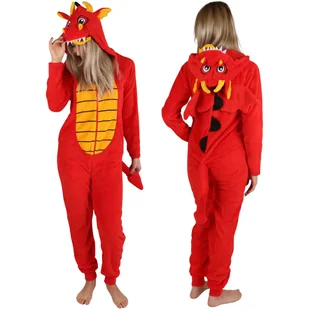 SMOK Damska, JEDNOCZĘŚCIOWA piżama, CIEPŁY kombinezon z kapturem, KOSTIUM, PRZEBRANIE ZA SMOKA XXS