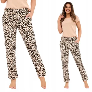 SPODNIE PIŻAMOWE DAMSKIE CORNETTE 690 XL / 42 Beż Bardzo wygodne i komfortowe długie damskie spodnie piżamowe damskie 690/47, polskiego producenta Cornette. Wykonane z najwyższej jakości bawełny co sprawia, że są bardzo miłe w dotyku i wygodne w użytkowaniu. Spodnie z wygodnymi kieszeniami na drobiazgi w beżowo brązową panterkę. W pasie gumka i dodatkowo sznurek do regulacji. Wyprodukowano w Polsce.