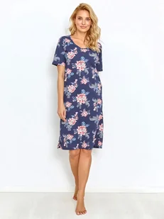 Letnia koszula damska z wysokiej jakości bawełna w kolorowe kwiaty. MOdel z krótkim rękawem. Koszula z dekoltem pół-krągłym. Fason trapezowy.