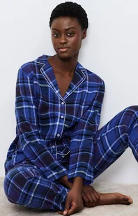 Triumph piżama damska Boyfriend PW 01 X Checks 10225075-M008 wykonana z miękkiej i przyjemnej w dotyku flaneli bawełnianej, idealnie sprawdzi się na chłodniejsze noce. Koszula z długim rękawem zapinana jest na guziki i posiada elegancki kołnierzyk z kontrastową lamówką, co dodaje jej tradycyjnego, ale stylowego charakteru. Spodnie o prostym kroju zapewniają wygodę i swobodę ruchów podczas snu i wypoczynku. Kraciasty wzór w odcieniach niebieskiego i granatu nadaje zestawowi ponadczasowego uroku. To piżama, która łączy w sobie komfort, ciepło i klasyczną estetykę doskonała do wieczornego re