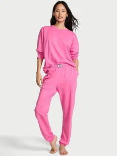 Odkryj miękką, w pełni bawełnianą piżamę. To niezbędny zestaw, bez którego trudno się obejść — teraz z odrobiną blasku. Nasza sygnowana naszywka z kryształkami lśni w pasie spodni w stylu jogger. W zestawie bluzka i spodnie Luźny krój Wykonana z czystej, wyjątkowo miękkiej bawełny Długi rękaw z mankietami z prążkowanej dzianiny Spodnie jogger z elastycznym pasem i nogawkami Sygnowana naszywka z kryształkami w pasie Kieszenie boczne Długość nogawki: 71cm Można prać w pralce Produkt importowany