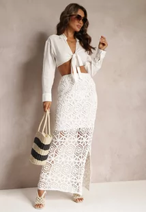 Biała Ażurowa Spódnica Maxi z Rozcięciem Devotti