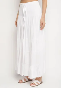 Biała Spódnica z Wiskozą z Wysokim Stanem i Falbanami Ellimee