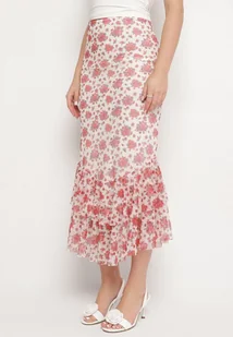Biało-Czerwona Spódnica o Dopasowanym Kroju Zdobiona Falbanką Efririsse