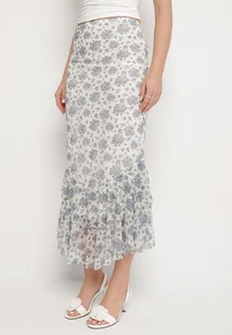 Biało-Niebieska Spódnica o Dopasowanym Kroju Zdobiona Falbanką Efririsse