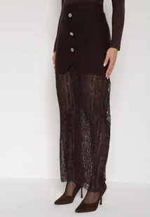 Brązowa Dzianinowa Spódnica z Wiskozą Zdobiona Koronką i Guzikami Sewora