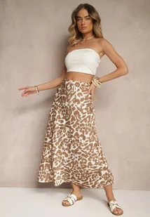 Brązowo-Beżowa Panterkowa Spódnica z Wiskozy High Waist Fevirellea