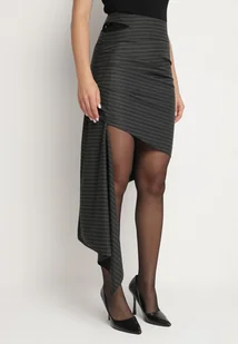 Ciemnoszara Asymetryczna Spódnica z Wiskozą i Wysokim Stanem w Paski Lobire