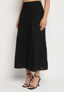 Czarna Bawełniana Spódnica o Rozkloszowanym Kroju Zdobiona Haftem Tolirela