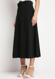 Czarna Gładka Spódnica Maxi z Gumką w Pasie i Klamrą Orirsa