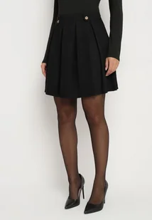 Czarna Plisowana Spódnica z Imitacji Zamszu o Rozkloszowanym Kroju Deorani