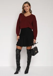 Czarna Plisowana Spódnica z Wiskozą z Wysokim Stanem Nesadoe