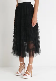Czarna Rozkloszowana Spódnica z Tiulowymi Falbankami i Gumką w Pasie Keleia