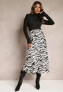 Czarna Satynowa Spódnica Ozdobiona Abstrakcyjnym Wzorem w Paski Zebry Pintea