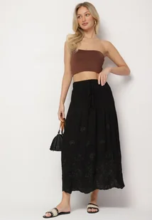 Czarna Spódnica Rozkloszowana z Bawełny z Haftowanymi Kwiatami Divilene