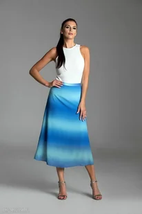 Długa letnia spódnica trapezowa w kolorze błękitno-turkusowym - ombre