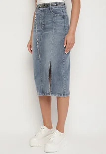 Granatowa Bawełniana Spódnica Jeansowa Ozdobiona Łańcuchem Lilisela