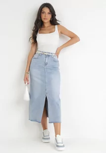 Jasnoniebieska Jeansowa Spódnica Maxi z Wysokim Stanem Nicyela