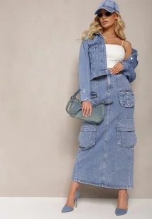Jasnoniebieska Ołówkowa Spódnica Maxi z Bawełny z Kieszeniami Metrima