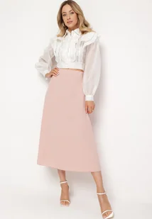 Jasnoróżowa Klasyczna Spódnica Midi Rozkloszowana Verettia