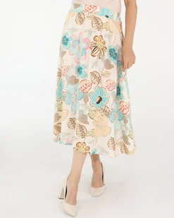 KOLOROWA SPÓDNICA Z WISKOZY 248-G002 BEIGE - Unisono