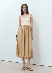 Połączenie tkanin, Spódnica z modalu, Projekt midi, Fason bombka, Dekolt w serek, Bez rękawów, Cienkie, regulowane ramiączka, Dół z bufiastym wykończeniem, Bez zapięcia, Podszewka wewnętrzna, To ubranie jest częścią naszej kolekcji casual, zaprojektowanej, aby stylowo ci towarzyszyć na co dzień