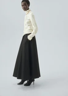 MANGO - Długa spódnica o rozszerzanym kroju czarny - L - Kobieta