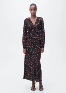 MANGO - Długa spódnica o rozszerzanym kroju w kwiaty czarny - 1XL-2XL - Kobieta