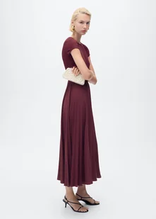 MANGO - Plisowana sukienka z łączonych materiałów burgund - S - Kobieta